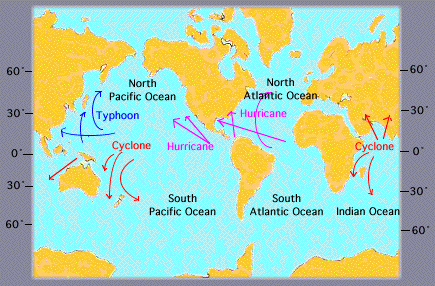 In time, hurricanes move into the middle latitudes and are driven northeastward by the westerlies, occasionally merging with midlatitude frontal systems. Hurricanes draw their energy from the warm surface water of the tropics, which explains why hurricanes dissipate rapidly once they move over cold water or large land masses.